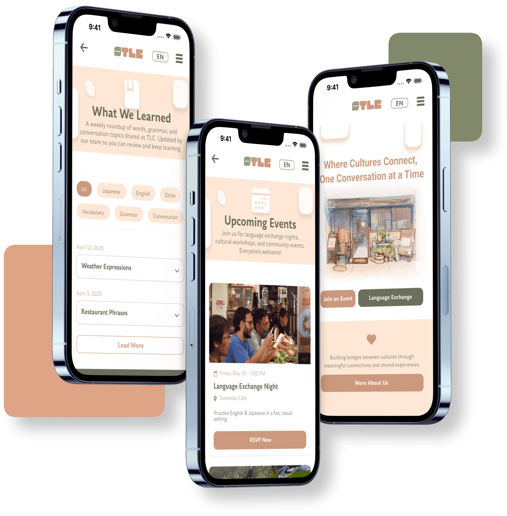 A mobile-first experience that helps new members easily discover, join, and stay engaged with TLC — a grassroots language and culture exchange in Japan.