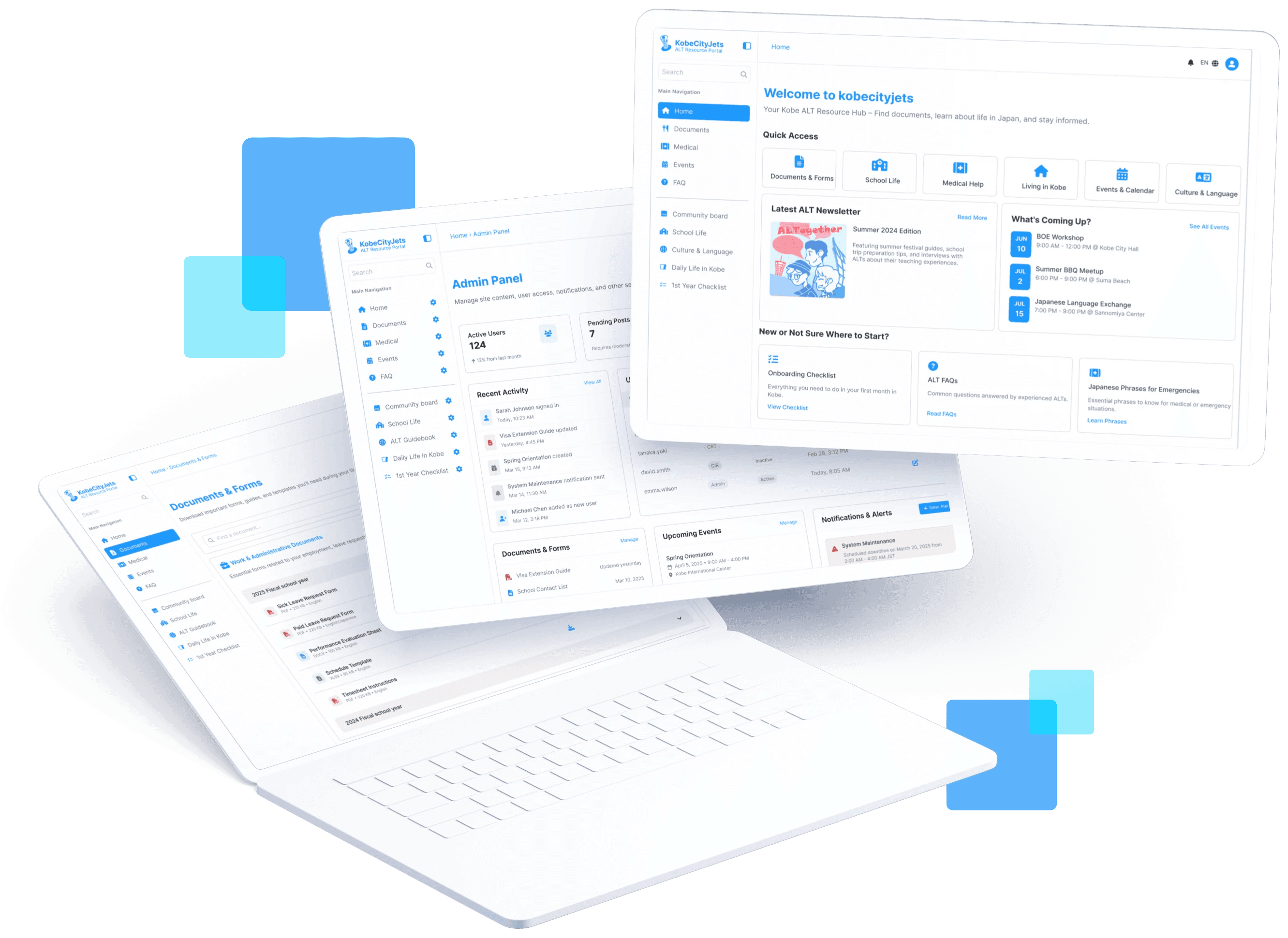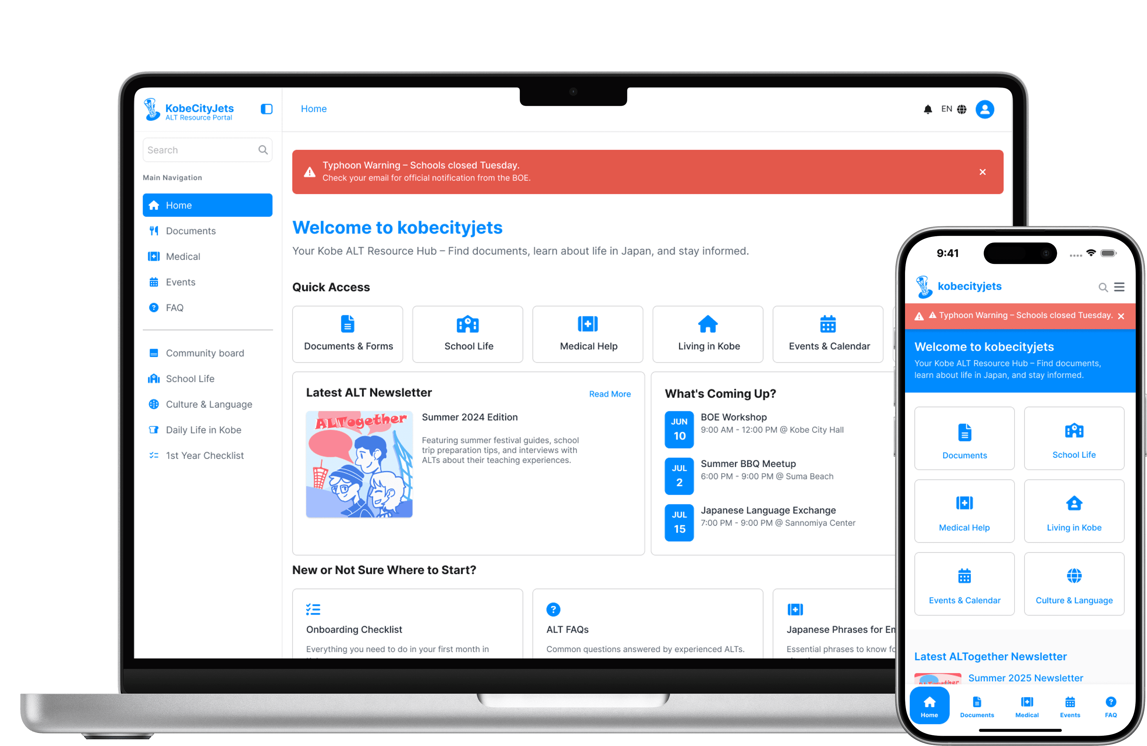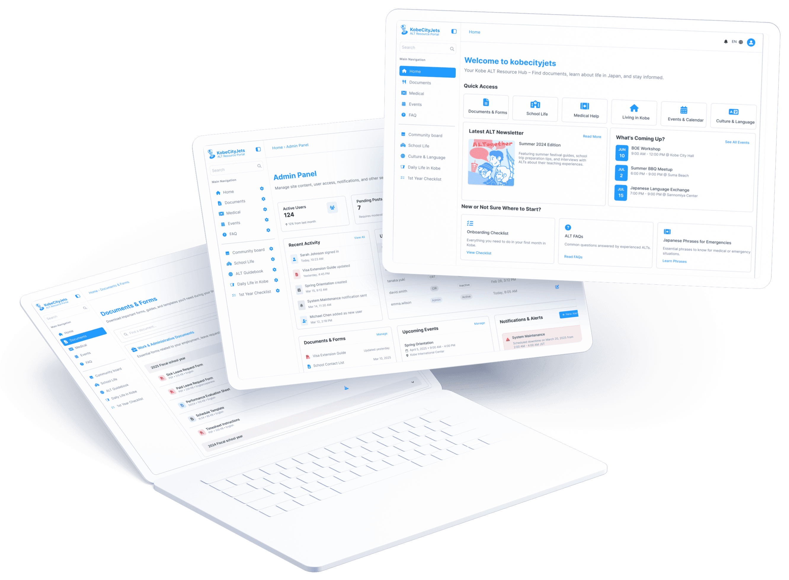 KobeCityJETs introduces a centralized web platform designed to unify essential resources, streamline communication, and support both new and veteran ALTs in Kobe.