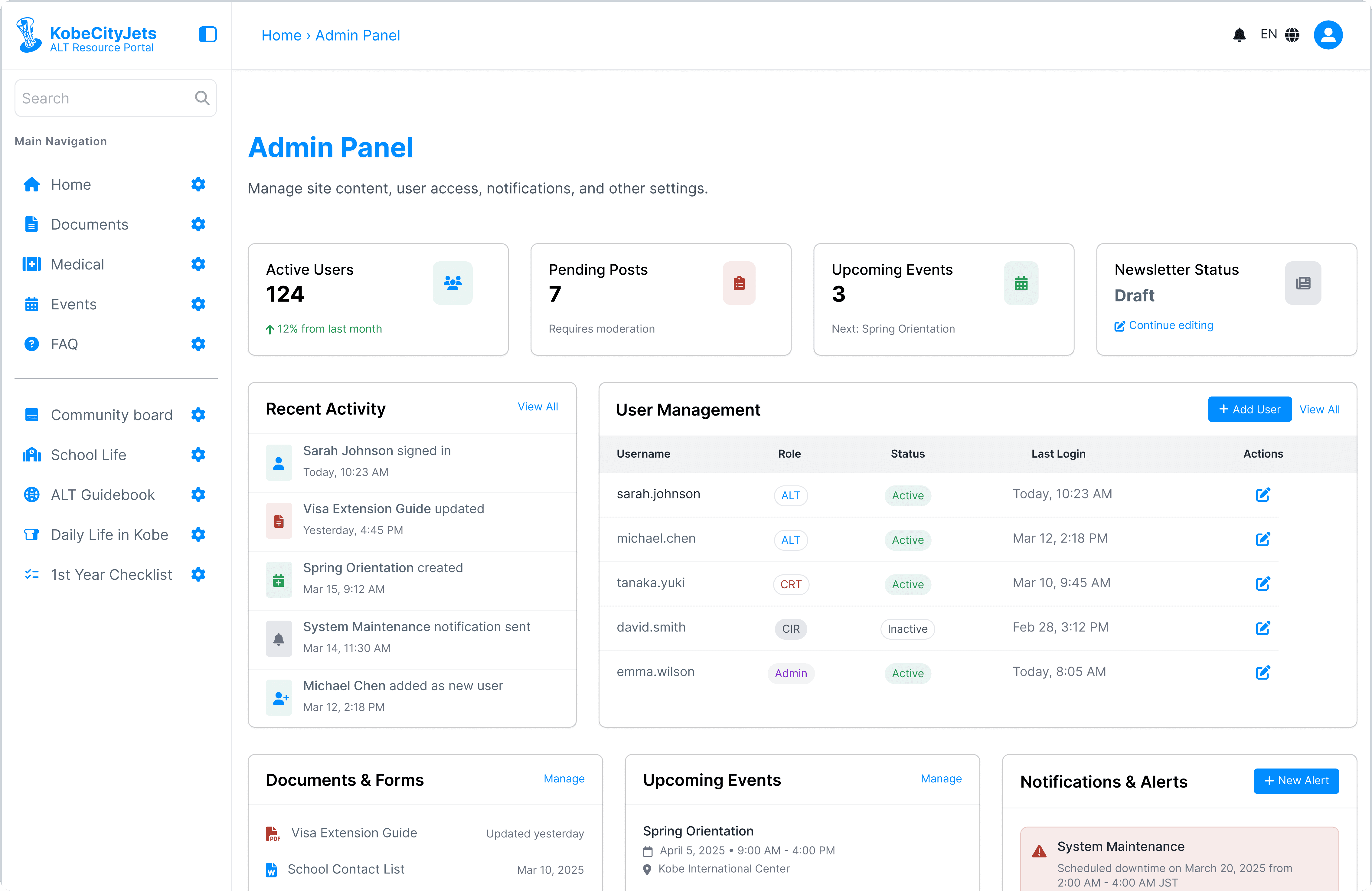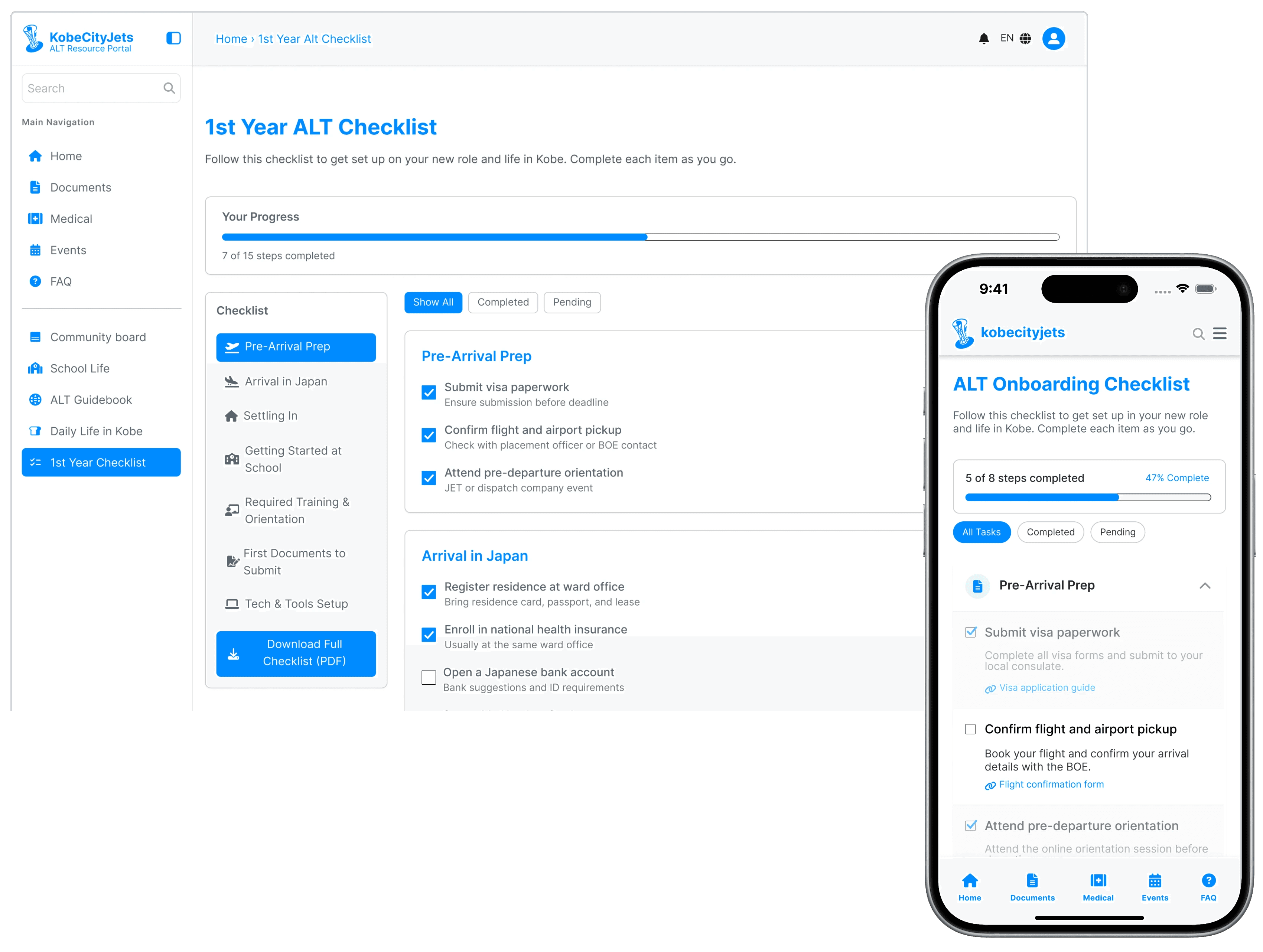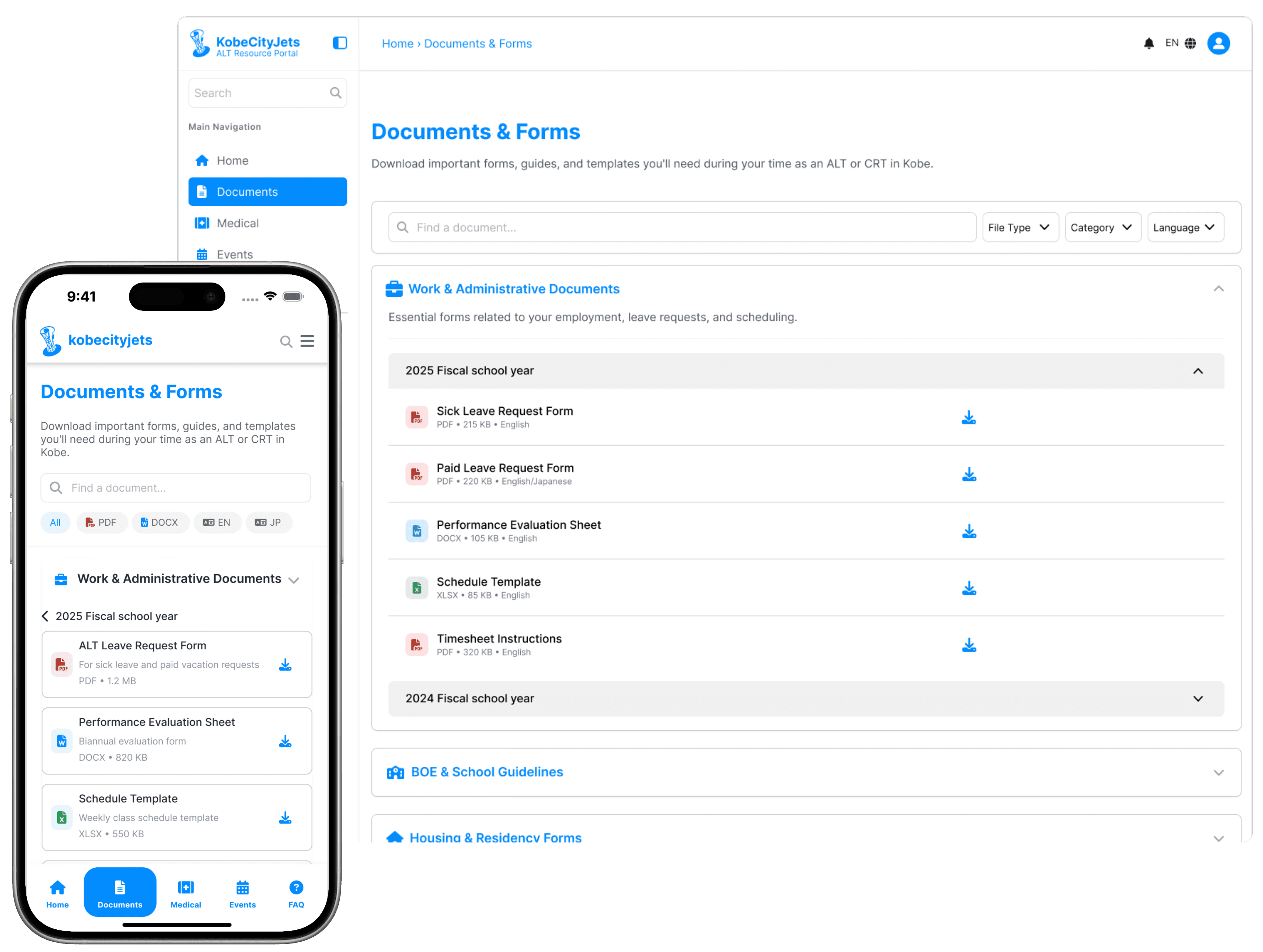 KobeCityJETs introduces a centralized web platform designed to unify essential resources, streamline communication, and support both new and veteran ALTs in Kobe.