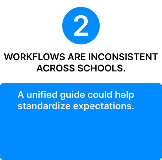 Working with CIRs revealed how fragmented communication between the Board of Education, schools, and ALTs shaped the sites structure. The design needed to reflect real-world information flow rather than the previous idealized hierarchy.