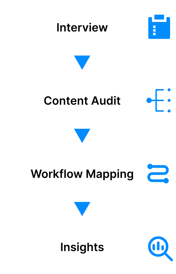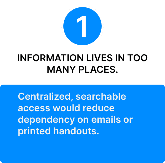 Through mapping and interviews, recurring patterns revealed the need for a unified, transparent, and easily searchable system. These became the foundation for the redesign strategy.