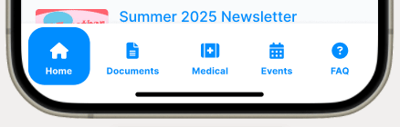 The homepage gives a clear snapshot of upcoming events, key forms, and quick-access resources. Everything important is surfaced in one glance, removing the need to dig through chats, emails, or old folders.