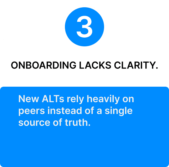 A lot of questions we get from ALTs are things that are technically already answered somewhere, but people just don’t know where to find them. We have documents, but they’re buried in folders or only shared by email. It’s not a lack of information—it’s a visibility and consistency issue.